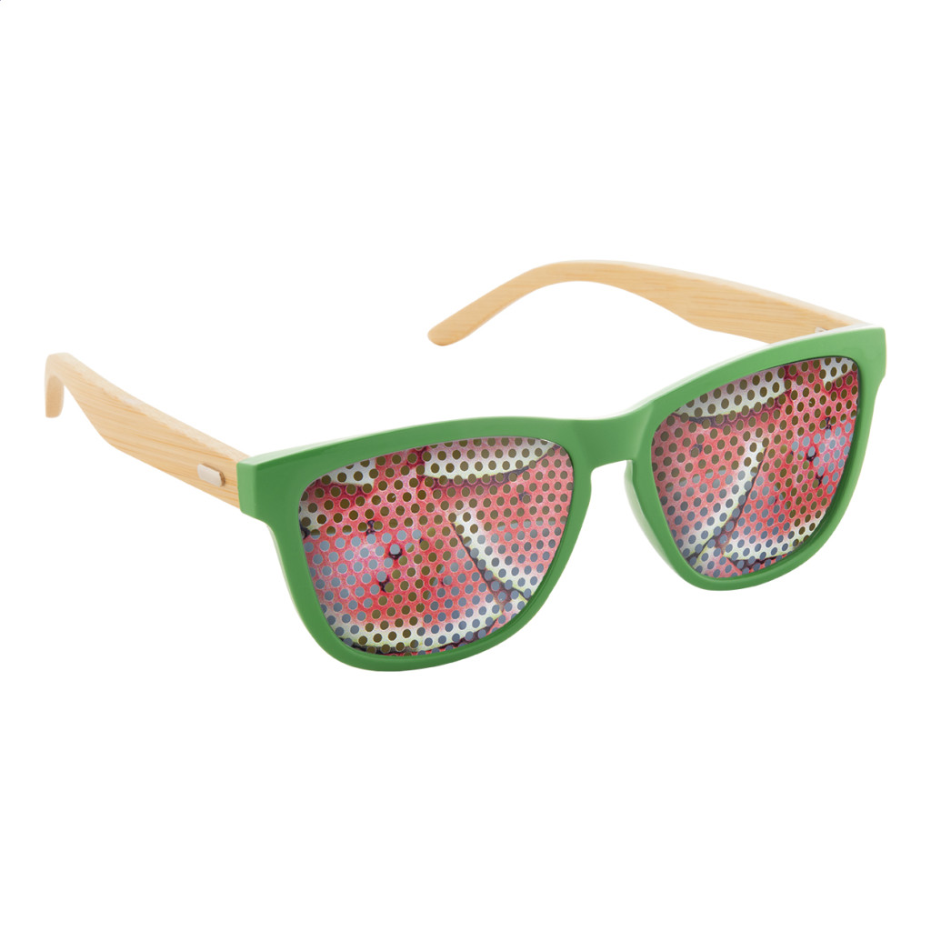 Napszemüvegek színes, műanyag kerettel és bambusz szárral. UV 400 védelemmel.