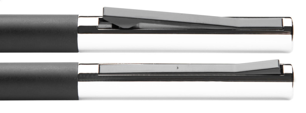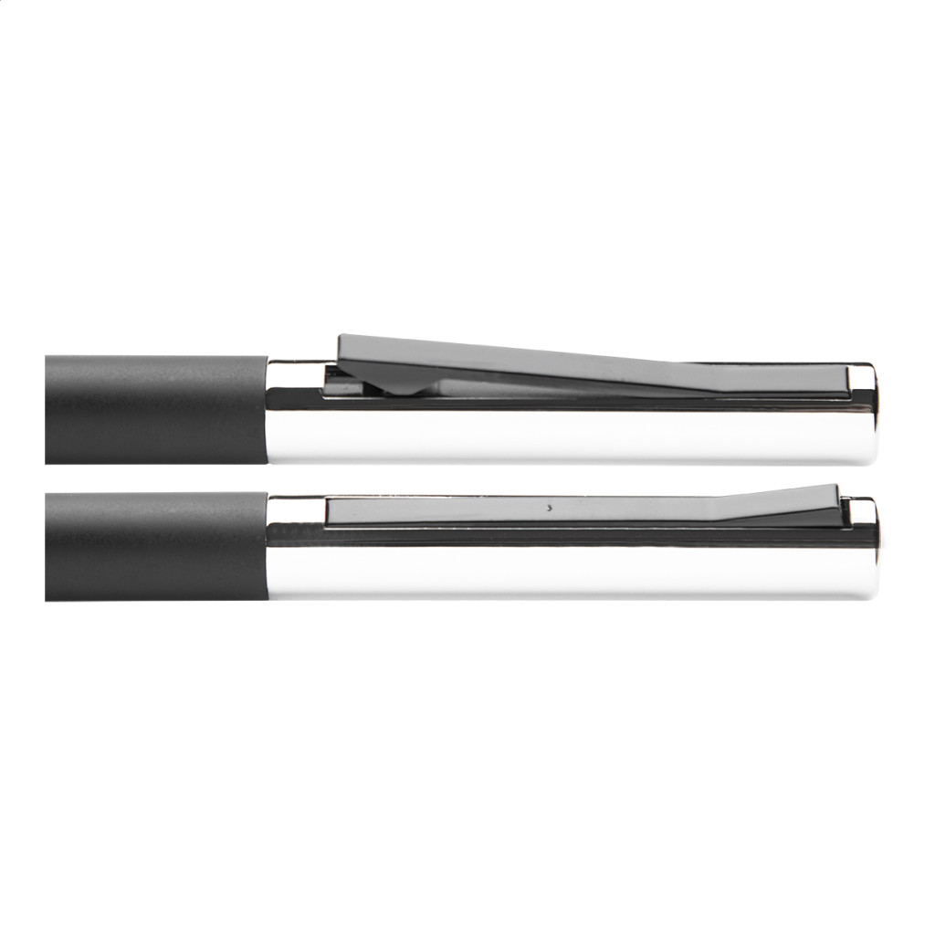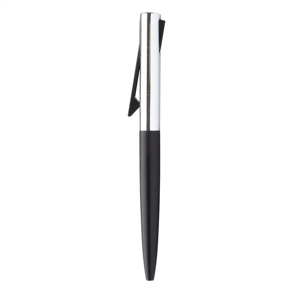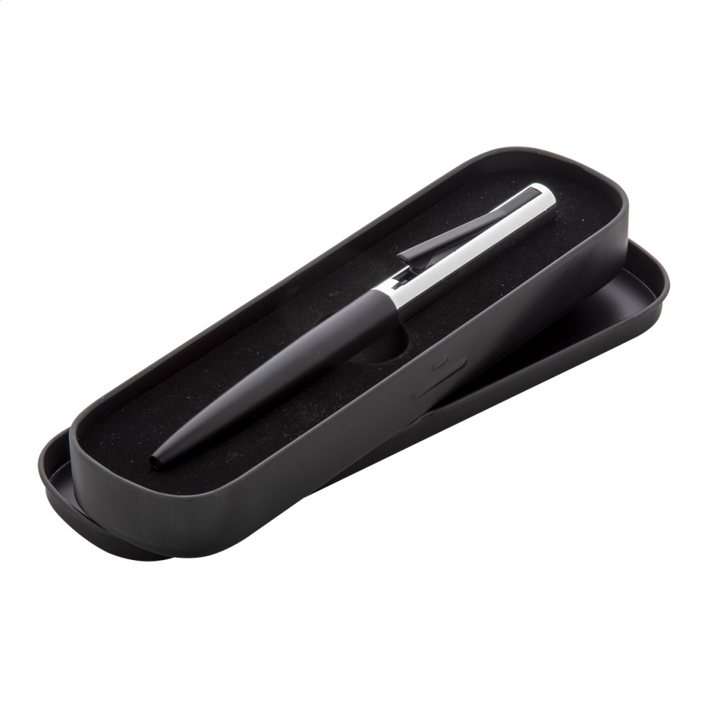 Alumínium golyóstoll, színben megegyező fém dobozban. A klipsz ki-be kapcsolása egyedi módon történik. Kék tollbetéttel szállítjuk.