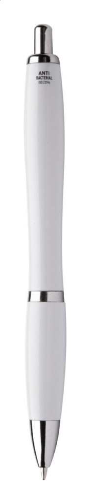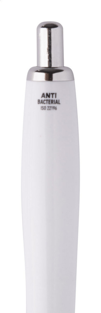 Antibakteriális műanyag testű golyóstoll króm részekkel. Nano ezüst adalékanyagot tartalmaz, megakadályozva a baktériumok szaporodását a toll testén. Nyomómechanizmussal működik és kék tollbetéttel szállítjuk. ISO 22196 szabványnak megfelel.