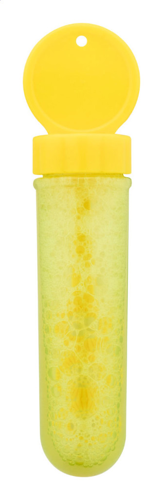 Színes, műanyag buborékfújó. 30 ml folyadékot tartalmaz.