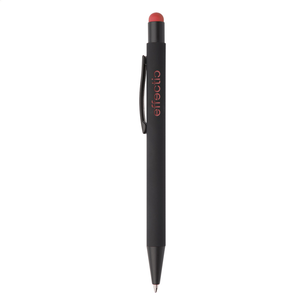 Alumínium golyóstoll érintőképernyős funkcióval, gumírozott felülettel. Különleges bevonattal, melynek gravírozása után az embléma az érintőképernyős véggel harmonizáló színben jelenik meg. Kék tollbetéttel szállítjuk.