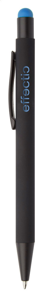 Alumínium golyóstoll érintőképernyős funkcióval, gumírozott felülettel. Különleges bevonattal, melynek gravírozása után az embléma az érintőképernyős véggel harmonizáló színben jelenik meg. Kék tollbetéttel szállítjuk.