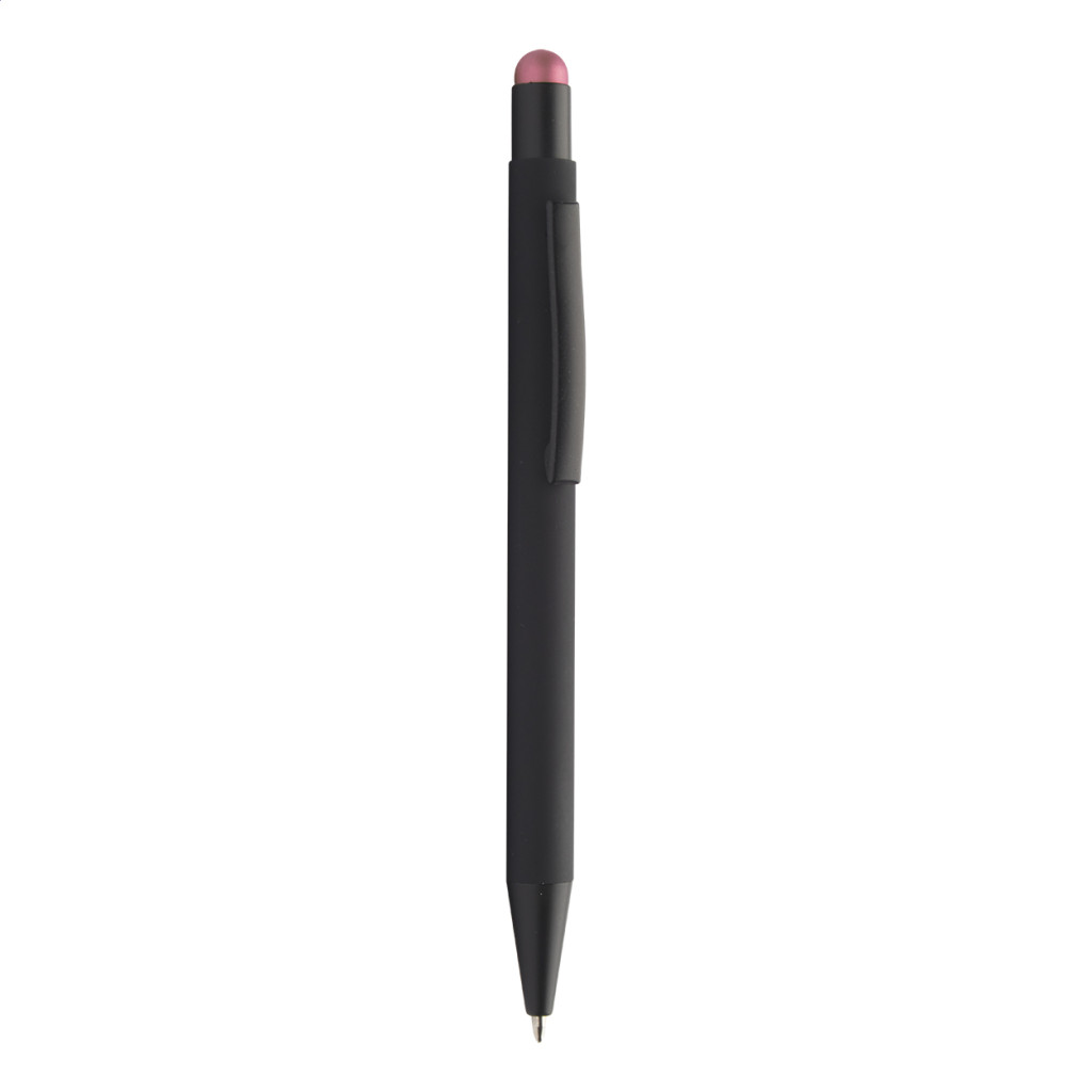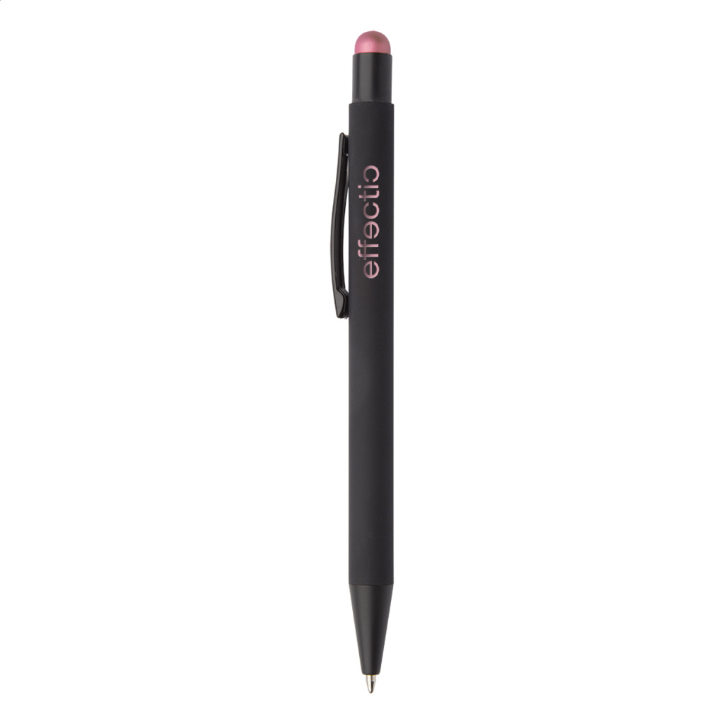 Alumínium golyóstoll érintőképernyős funkcióval, gumírozott felülettel. Különleges bevonattal, melynek gravírozása után az embléma az érintőképernyős véggel harmonizáló színben jelenik meg. Kék tollbetéttel szállítjuk.