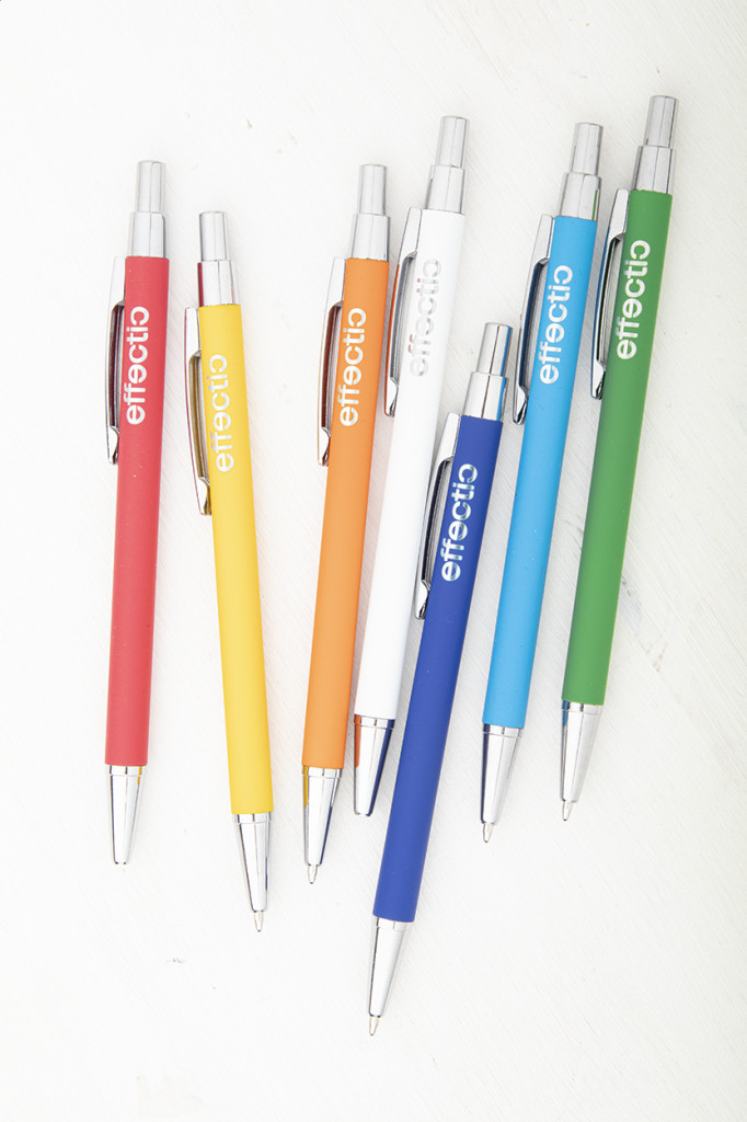 Alumínium golyóstoll gumírozott felülettel. Kék tollbetéttel szállítjuk. Speciális bevonattal rendelkezik, amely különlegesen fényessé teszi a gravírozott emblémát.