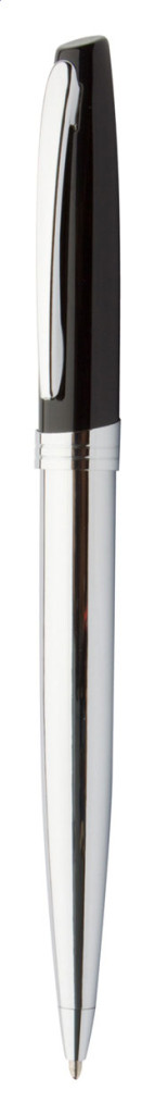 Fém golyóstoll fekete díszítéssel, króm kiegészítőkkel, fekete karton díszdobozban. Kék tollbetéttel szállítjuk.