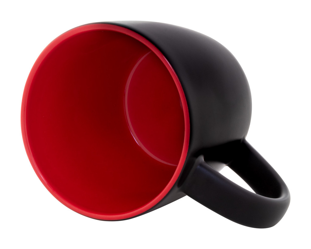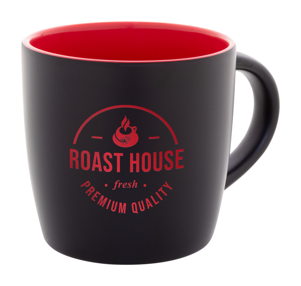 Fekete kerámia bögre színes belsővel, 300 ml. Speciális bevonattal rendelkezik, a gravírozott logó megegyezik a belső színnel. Kraft papír dobozban.
