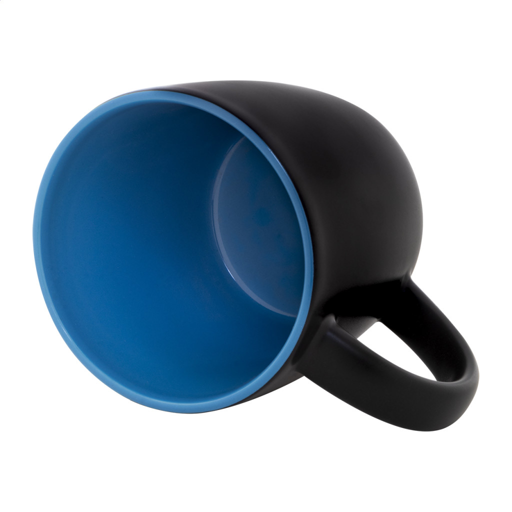 Fekete kerámia bögre színes belsővel, 300 ml. Speciális bevonattal rendelkezik, a gravírozott logó megegyezik a belső színnel. Kraft papír dobozban.