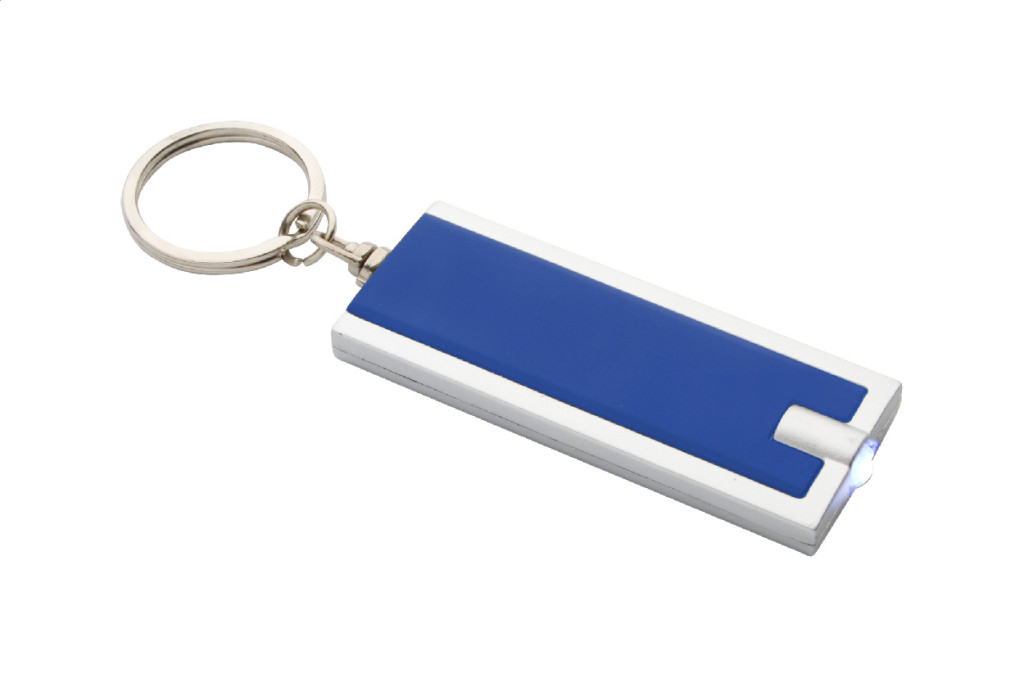 Újrahasznosított ABS műanyag kulcstartó LED elemlámpával és fém karikával. Gombelemmel szállítjuk.